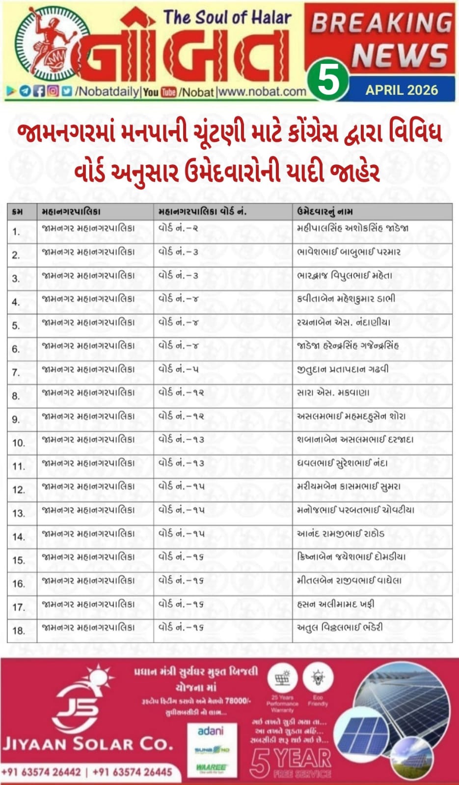 જામનગર મહાનગરપાલિકા ચૂંટણીમાં