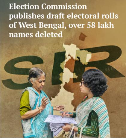 પશ્ચિમ બંગાળમાં ચૂંટણી પંચે ડ્રાફટ મતદાર યાદી જાહેર કરીઃ પ૮ લાખથી વધુ નામો દૂર કરાયા.