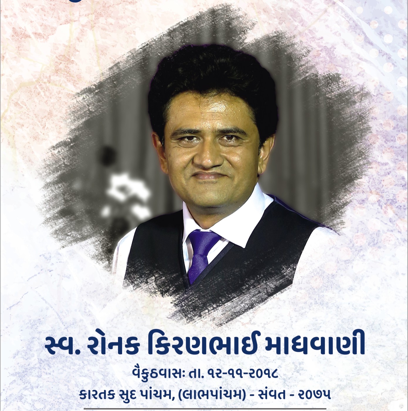 વર્ષ-૨૦૧૮નો એ ગોઝારો દિવસ અમને બધાને કારમો આઘાત આપી ગયો હતો. જ્યારે માધવાણી પરિવાર સહિત સૌનો લાડકવાયો રોનક યુવાનવયે વૈકુંઠયાત્રાએ નીકળી ગયો હતો.