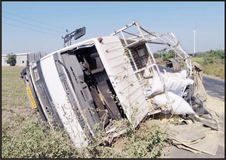 ખાતર ભરેલી બોરીઓ રોડ પર વેરવિખેરઃ
