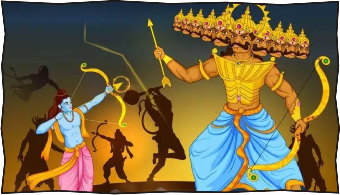 નવરાત્રિ દરમિયાન દરરોજ થતી માતાજીની આરતીની ઉપરોક્ત પંક્તિ રામાયણકાળમાં યુદ્ધના મેદાન પર ભગવાન શ્રીરામે અસૂર રાજા રાવણનો વધ કર્યો હતો, તેના સંદર્ભે ગવાય છે. દશેરાને 'દશહરા' એટલે કે દસ માથાળા રાવણના સંહાર તરીકે રાવણને વર્ણવવા માટે પણ વિવિધ શબ્દપ્રયોગો થાય છે. દશેરાનું આધ્યાત્મિક, ધાર્મિક, સાંસ્કૃતિક, પ્રાસંગિક અને આર્થિક મહાત્મય જોતા આ દિવસ એક તહેવાર જ નહીં, એક પૌરાણિક તથા ઐતિહાસિક યુગનું ક્લાયમેક્સ પણ વર્ણવે છે.