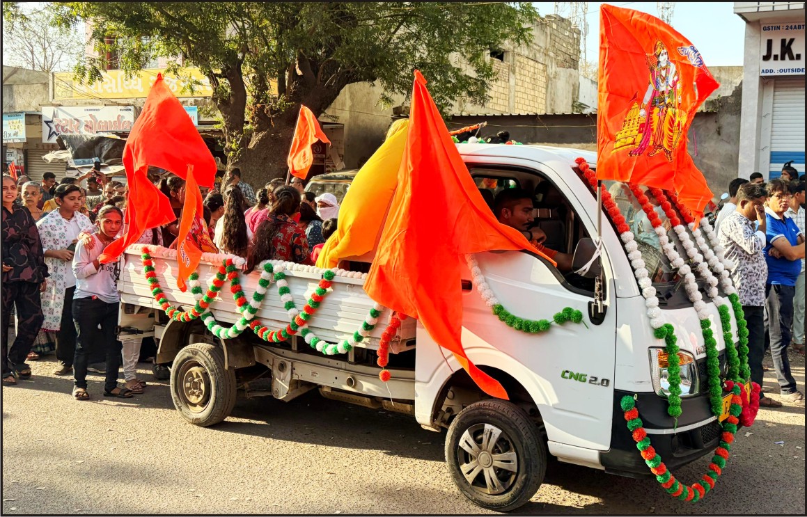 ભાણવડમાં પવિત્ર રામનવમી નિમિત્તે ભવ્ય શોભયાત્રાનું આયોજન કરવામાં આવ્યું હતું. શહેરના વિવિધ વિસ્તારોમાંથી ભક્તો મોટી સંખ્યામાં જોડાયા હતાં અને 'જય શ્રીરામ'ના ગૂંજતા નારા સાથે સમગ્ર વાતાવરણ ભક્તિમય બની ગયું હતું. શોભાયાત્રામાં સુંદર ઝાંખીઓ, ભગવા ધ્વજ, ડિજેના તાલ સાથે લોકોમાં ભારે ઉત્સાહ જોવા મળ્યો હતો. નાના બાળકોથી લઈને વડીલો સુધી સૌએ ઉત્સાહપૂર્વક ભાગ લીધો હતો. આ યાત્રા શહેરના મુખ્ય માર્ગો પરથી પસાર થઈ હતી, જ્યાં સ્થાનિક લોકોએ પણ યાત્રાનું સ્વાગત કરી ઠંડા સરબત પ્રસાદનું પણ આયોજન કરવામાં આવ્યું હતું.