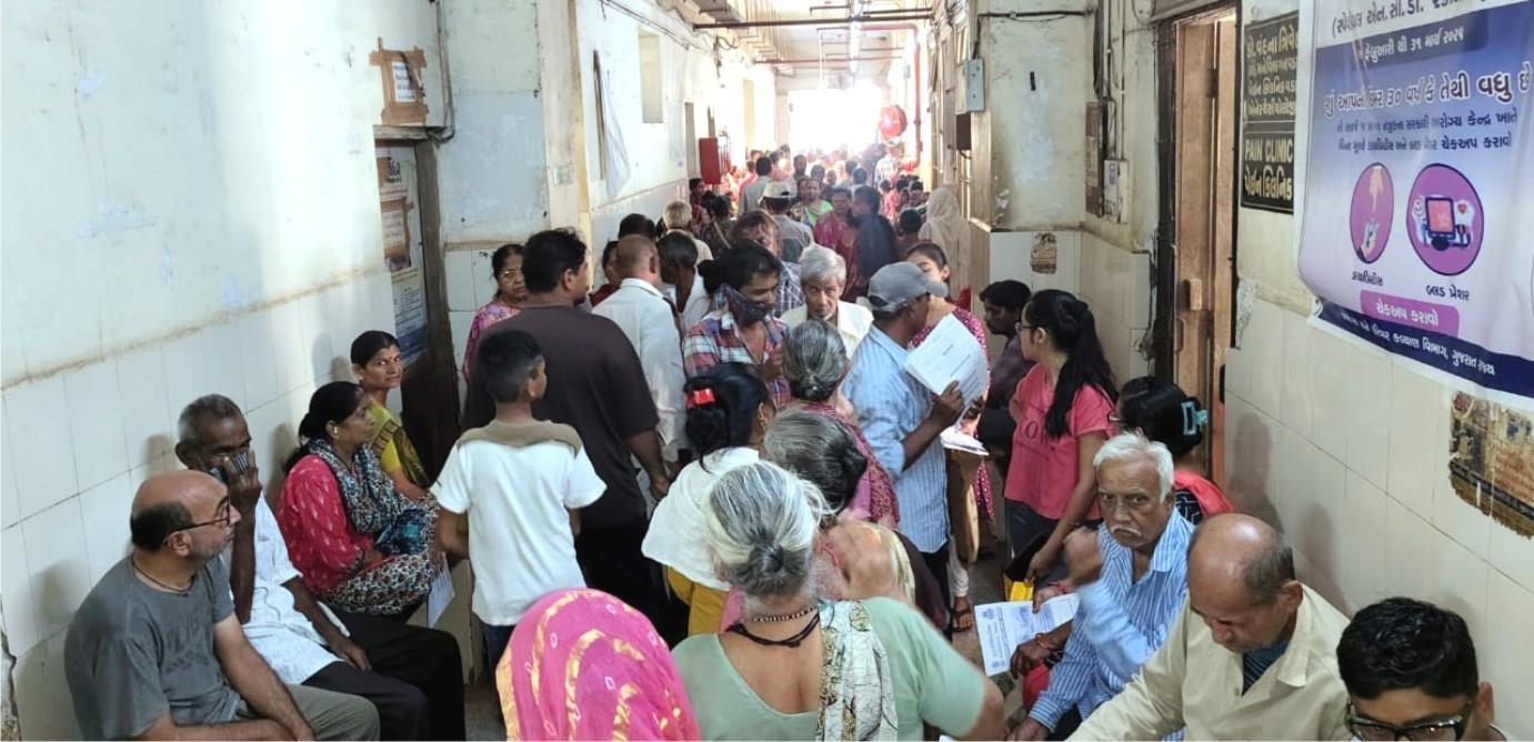 જામનગર સહિત હાલારમાં બેવડી સિઝનના કારણે રોગચાળાનું પ્રમાણ વધ્યું છે. જી.જી. હોસ્પિટલમાં દર્દીઓની બેકાબુ ભીડ જોવા મળી રહી છે. શિયાળાની સિઝનનો ધીમા પગલે પ્રારંભ થઈ રહ્યો છે. મોડી રાત્રે વાતાવરણમાં ઠંડકનો અહેસાસ અનુભવાઈ રહ્યો છે, જ્યારે બપોરે હજુ ગરમીનો પણ અનુભવ થઈ રહ્યો છે, તો સાથોસાથ હજુ વાતાવરણમાં માવઠાની અસર પણ જોવા મળે છે. આમ મિશ્ર ઋતુના કારણે બીમારીનું પ્રમાણ વધવા પામ્યું છે. ઘરે ઘરે શરદી-ઉધરસ, તાવ, પેટની બીમારી વિગેરે રોગના દર્દીઓ જોવા મળી રહ્યા છે. સૌરાષ્ટ્રની સૌથી મોટી જામનગરની જી.જી. હોસ્પિટલમાં દર્દીઓની ભારે ગીર્દી જોવા મળી રહી છે. કેસ મેળવવા, ડોક્ટરને બતાવવા અને દવાબારીમાંથી દવા લેવા માટે દર્દીઓની લાંબી કતારો જોવા મળી રહી છે. કેસ બારીમાં લાઈનો જોવા મળે નહીં તે માટે આભા કાર્ડ, નોંધણીની વ્યવસ્થા કરવામાં આવી છે, પરંતુ લોકો ઓછા પ્રમાણમાં તેનો લાભ લઈ રહ્યા છે, જે માટે જાગૃતિ લાવવાની જરૂર છે.