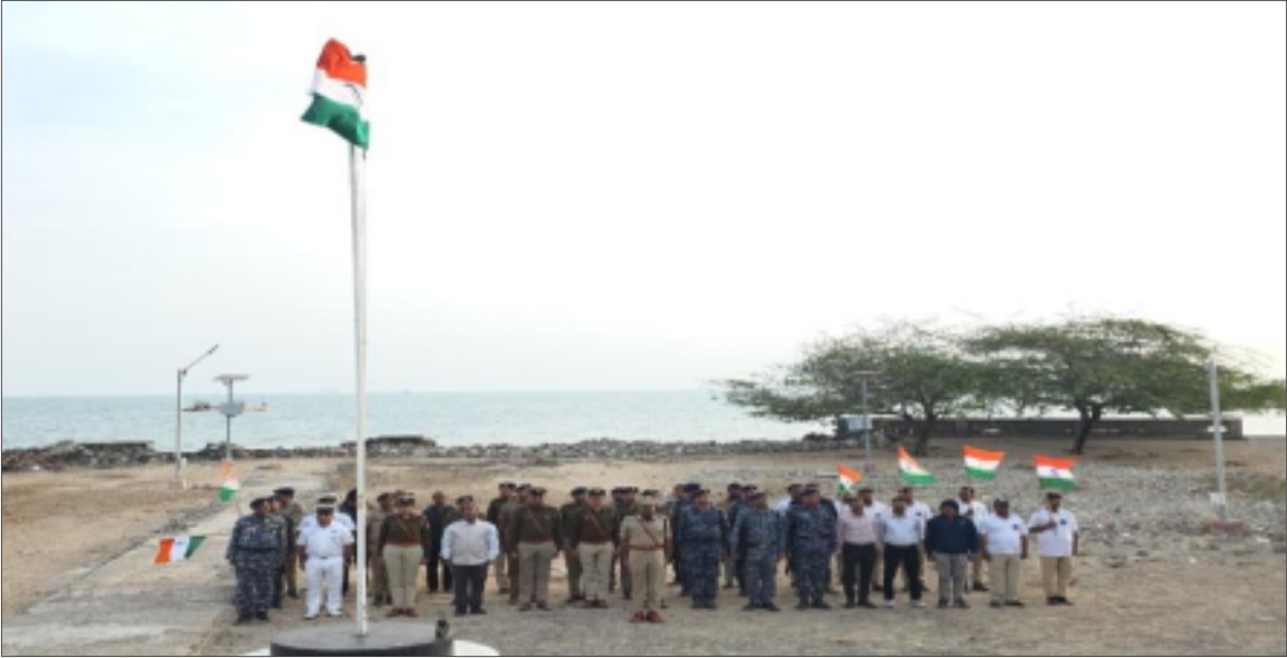 ભારતના ૭૭મા પ્રજાસત્તાક પર્વ નિમિત્તે સુપ્રસિદ્ધ યાત્રાધામ દ્વારકામાં ભગવાન દ્વારધાધીશજીના મંદિરના શિખર પર રાષ્ટ્રધ્વજ તિરંગો લહેરાવવામાં આવ્યો હતો.