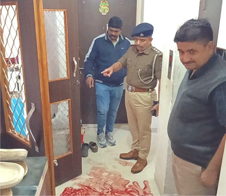 આ વેળાએ જ ત્યાંથી હાથમાં લોહીવાળુ છરી જેવું હથિયાર ધારણ કરેલો એક શખ્સ અને તેની પાછળ એક અન્ય શખ્સ નીકળતા જોવા મળ્યા હતા. એપાર્ટમેન્ટના પાર્કિંગ પાસે એકઠા થયેલા લોકોને ઘસી જવાની સૂચના આપી આ બંને શખ્સ પોબારા ભણી ગયા હતા. કંઈ અજુગતુ બન્યાની આશંકાથી જ્યારે અન્ય નાગરિકો ફ્લેટ નં.૫૦૨ પાસે પહોંચ્યા ત્યારે અંદરથી નિલયભાઈના પત્ની રોક્કળ કરતા જોવા મળ્યા હતા અને તેમના ફ્લેટમાં ચોતરફ લોહી પ્રસરેલુ નજરે પડ્યું હતું.