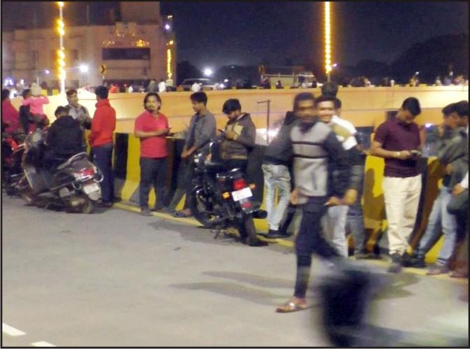 રોશની અને લાઈટીંગથી ઝળહળતા ફલાય ઓવર ઉપર ડ્રાઈવીંગ કરવાની મોજ માણવા નગરના શોખીનો ફલાય ઓવર પર ઉમટી પડ્યા. અનેક લોકોએ તો જાણે હરવા-ફરવાનું નિરાંતનું સ્થળ હોય તેમ ફલાય ઓવર ઉપર પોતાના વાહનો પાર્ક કરી બેસી ગયા...! વાહનો પણ ફલાય ઓવર પરના ટ્રાફિકના ફલોને અવરોધરૂપ બને તેવી રીતે રાખીને ઊભા રહ્યાં હતાં.