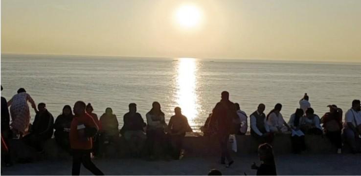 દ્વારકાના સનસેટ પોઈન્ટ પર ઉમટ્યા સહેલાણીઓઃ આથમતા સૂર્ય સાથે લીધી સેલ્ફી