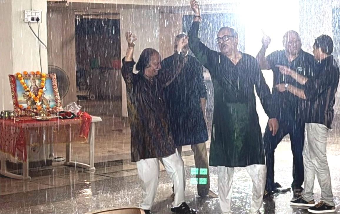 જામનગર શહેરમાં ગઈકાલે રાત્રે નવ વાગ્યા પછી મુશળધાર વરસાદ તૂટી પડતાં મોટાભાગના નવરાત્રિ આયોજન - ગરબા બંધ રાખવાની ફરજ પડી હતી. આરામ હોટલ પાસેના ગોલ્ડન નેસ્ટ એપાર્ટમેન્ટના રહેવાસીઓ દ્વારા ચાલુ વરસાદે પણ રાબેતા મુજબ માતાજીના ગરબા સાથે નોરતાને ઉજવવામાં આવ્યું હતું. બહેનોના રાસ ગરબા સાથે એપાર્ટમેન્ટના ભાઈઓ પણ આ રેઈની ગરબામાં જોડાયા હતાં અને માતાજીના પર્વની અવિરત ઉજવણી ચાલુ રાખી હતી.