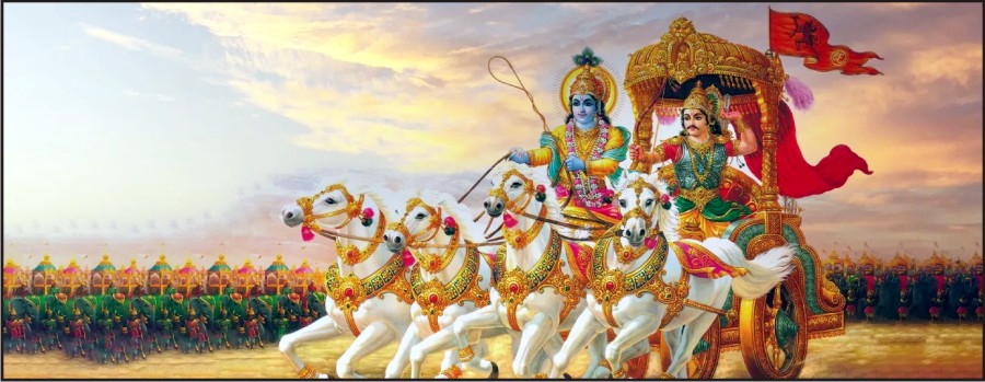 આ પ્રમાણે કૃષ્ણ અર્જુનના સારથિ થયા અને તેમણે તે સુવિખ્યાત ધનુર્ધરનો રથ હાંકવાની જવાબદારી સ્વીકારી. આમ, જ્યાંથી ભગવદ્ગીતાનો પ્રારંભ થાય છે તે ઘટના સુધી આપણે આવી પહોંચીએ છીએ-બંને પક્ષના સૈન્યો બે બાજુએ યુદ્ધ કરવા તૈયાર થઈને ઊભાં છે અને ધૃતરાષ્ટ્ર ચિંતિત થઈ પોતાના મંત્રી સંજ્યને પૂછી રહ્યાં છે કે, તે સેનાઓએ શું કર્યું...?