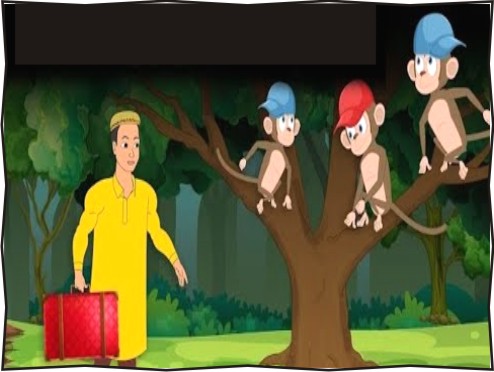 ફેરિયાએ ગુસ્સામાં હાથ હલાવ્યો, તો વાંદરાઓએ પણ સામે હાથ હલાવ્યા. ફેરિયો સમજી ગયો કે આ વાંદરાઓ નકલખોર છે. તેને એક યુક્તિ સૂઝી.