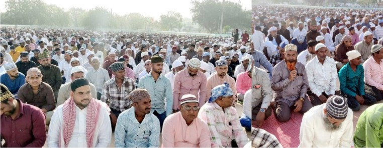 શહેરની મસ્જીદોમાં ઈદની નમાઝ પછી એક બીજાને ઈદ મુબારક પાઠવ્યા હતા