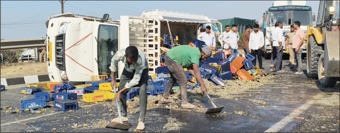 રોડ પર બોટલો તૂટીને થઈ વેરવિખેરઃ