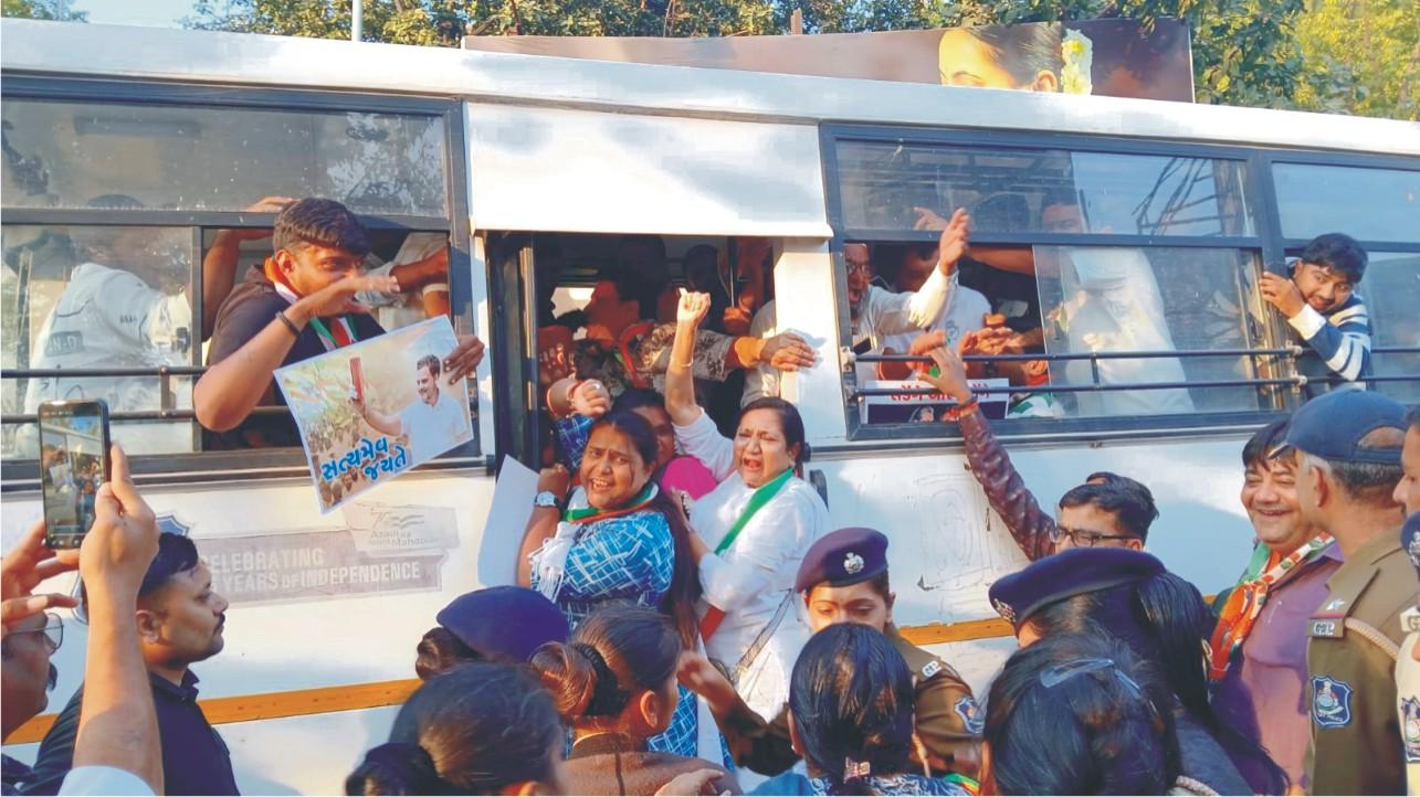 નેશનલ હેરાલ્ડ કેસમાં દેશના ઈ.ડી. દ્વારા કોંગ્રેસના રાષ્ટ્રીય નેતાઓ સોનિયા ગાંધી તથા રાહુલ ગાંધી સામે કેસ કર્યા હતાં. આ કેસોમાં સર્વોચ્ચ અદાલતે ઈ.ડી.ની અરજી જ કાઢી નાખતા કોંગ્રેસે ભાજપ સરકાર પર આક્ષેપ કરતા જણાવ્યું હતું કે, ઈ.ડી. જેવી સંસ્થા ભાજપના ઈશારે કોંગ્રેસના નેતાઓને હેરાન કરવામાં આવે છે, પણ આખરે ન્યાય મંદિરમાં ઈ.ડી.ની અરજી કાઢી નાખવામાં આવતા સત્યનો વિજય થયો છે. આ મુદ્દે જામનગર શહેર કોંગ્રેસના પ્રમુખ દિગુભા જાડેજાની આગેવાની હેઠળ શહેર કોંગ્રેસ કાર્યાલય પાસેના રોડથી ભાજપ સરકાર વિરૂદ્ધ પ્રદર્શન કરવાનો કાર્યક્રમ યોજાયો હતો. પોસ્ટર/બેનર અને સત્યામેવ જયતેના નારા સાથે ઉગ્ર વિરોધ પ્રદર્શન કરવામાં આવ્યું હતું. જો કે,આ કાર્યક્રમ સમયે પોલીસે કોંગ્રેસના આગેવાનો તથા કાર્યકરોની અટકાયત કરી હતી. આ કાર્યક્રમાં શહેર પ્રમુખ દિગુભા જાડેજા, સહારાબેન મકવાણા, મનપા વિરોધ પક્ષના નેતા ધવલભાઈ નંદા, પૂર્વ નેતા અને સિનિયર કોર્પોરેટર અલ્તાફ ખફી, કોર્પોરેટર રચનાબેન નંદાણિયા, આનંદ રાઠોડ, કાસમભાઈ જોખિયા, બિપેન્દ્રસિંહ જાડેજા, આનંદ ગોહિલ, યુવા કોંગ્રેસના હોદ્દેદારો, કોંગ્રેસના કાર્યકર્તાઓ મોટી સંખ્યામાં જોડાયા હતાં.