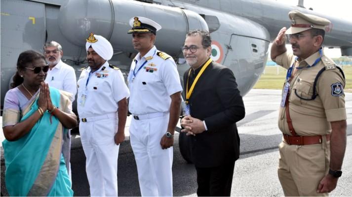 તે પહેલા રાષ્ટ્રપતિ શ્રીમતી દ્રૌપદી મુર્મુ તેમના ગુજરાતના ત્રિદિવીસીય પ્રવાસના તૃતીય દિવસે ભગવાન દ્વારકાધીશની પાવન ભૂમિ દ્વારકામાં આવી પહોંચતા દ્વારકા હેલિપેડ પર તેમનું ઉષ્માભર્યું સ્વાગત કરવામાં આવ્યું હતું. હેલિપેડ પર પ્રવાસન મંત્રી મૂળુભાઈ બેરા, ઉપરાંત કોસ્ટગાર્ડ ડી.આઈ.જી. શ્રી મનજીત સિંઘ ગિલ, આઈ.એન.એસ. કેપ્ટન શશાંક શર્મા કલેક્ટર રાજેશ તન્ના, જિલ્લા પોલીસ અધિક્ષક જયરાજસિંહ વાળાએ રાષ્ટ્રપતિને પુષ્પગુચ્છ આપી આવકાર્યા હતાં.