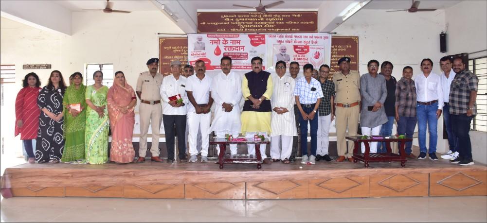 વડાપ્રધાન નરેન્દ્ર મોદીના જન્મ દિવસની ઉજવણી નિમિત્તે તથા ઓપરેશન સિંદૂરને મળેલી સફળતાના અનુસંધાને સમગ્ર ગુજરાતના વિવિધ સ્થળોએ આજે 'નમો કે નામ રક્તદાન કેમ્પ'નું આયોજન કરવામાં આવ્યું છે. ગુજરાત રાજ્ય કર્મચારી મહામંડળ અને ગુજરાત રાજ્ય સંયુક્ત કર્મચારી મોરચાના નેતૃત્વ હેઠળ રાજ્યના વિવિધ વિભાગોના ૩૦૦ થી વધુ કર્મચારી મંડળો દ્વારા-ગુજરાતમાં ૩પ૦ થી વધુ સ્થળોએ આજે સવારથી જ બ્લડ ડોનેશન કેમ્પનો પ્રારંભ કરવામાં આવ્યો હતો. રક્તદાન કેમ્પ માટે ૧,રપ,૦૦૦ લોકોએ રજિસ્ટ્રેશન કરાવ્યું છે, અને ૧,૦૦,૦૦૦ થી વધુ લોકોને રક્તદાનમાં જોડવા માટેની નેમ છે. જામનગર જિલ્લા સંયુક્ત કર્મચારી મોરચો, જામનગર જિલ્લાના તમામ કર્મચારી મંડળ તથા જામનગર તાલુકા અને શહેરના કર્મચારી મંડળો તેમજ જામનગરના ૩૦ થી વધુ કેડરના મંડળો દ્વારા શહેરમાં બે સહિત સમગ્ર તાલુકામાં કુલ ૬ સ્થળોએ રક્તદાન કેમ્પનું આયોજન કરવામાં આવ્યું હતું. જેમાં વિવિધ કેડરના કર્મચારીઓએ બહોળી સંખ્યામાં ઉપસ્થિત રહીને રક્તદાન કરીને આ કેમ્પને સફળ બનાવ્યો હતો. જામનગરમાં નેશનલ હાઈસ્કૂલ અને ડી.કે.વી. કોલેજ એમ બે સ્થળોએ રક્તદાન કેમ્પ રાખવામાં આવ્યો હતો. કેમ્પમાં જી.જી. હોસ્પિટલ તેમજ બે ખાનગી બ્લડ બેંકનો સહયોગ પ્રાપ્ત થયો હતો. જામનગર જિલ્લા પંચાયતના પ્રમુખ મયબેન ગરસર, પ્રાથમિક શિક્ષક સંઘના પ્રમુખ ચંદ્રકાન્તભાઈ ખાખરિયા, માધ્યમિક શિક્ષક સંઘના પ્રમુખ દિગુભા જાડેજા, વિવિધ સમિતિના ચેરમેન વિગેરે મહાનુભાવોએ હાજરી આપીને તમામને પ્રોત્સાહિત કર્યા હતાં.