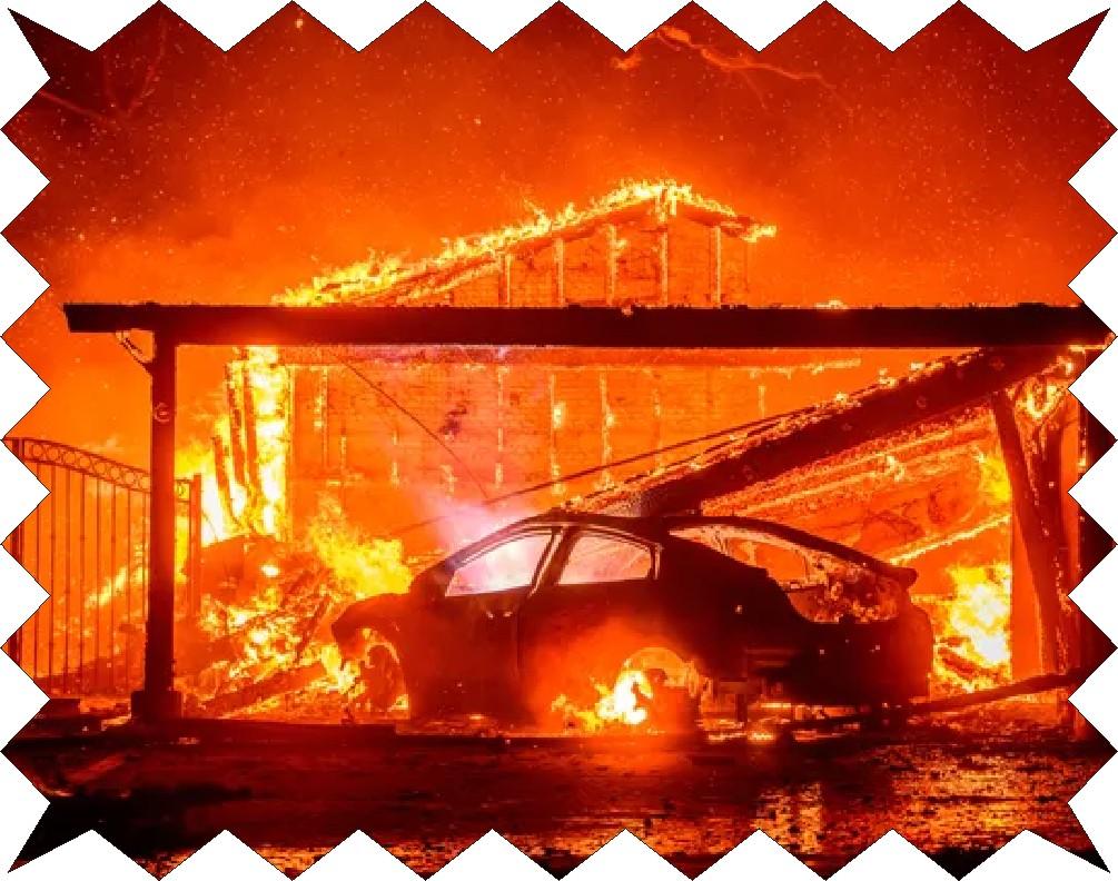 અમેરિકામાં કેલિફો-ર્નિયાના લોસ એન્જેલિસ વિસ્તારમાં મંગળવારે તેજ હવાના કારણે ફેલાયેલી જંગલની આગ બેકાબૂ બની હતી. કેટલીક જગ્યાએ ૯૭ કિ.મી. પ્રતિકલાકની ઝડપે પવન ફૂંકાતા આગ વધુ ફેલાઈ હતી. આ આગના કારણે એક હજારથી વધારે ઘર બળીને ખાખ થઈ ગયા છે. હોલિવૂડ સ્ટાર્સના બંગલા પણ બળીને ખાખ થઈ ગયા છે. લગભગ ૭૦ હજાર ને સુરક્ષિત સ્થળોએ ભાગવું પડ્યું હતું. આગ ફેલાતા લોકો ઉતાવળમાં પોતાના વાહન પણ ત્યાં મૂકીને ભાગી ગયા હતાં. લોકો રસ્તા પર પગપાળા ભાગતા જોવા મળ્યા હતાં.