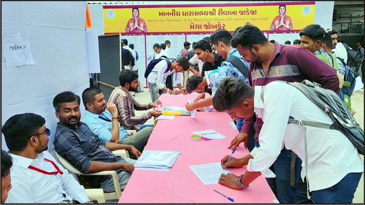 જામનગરમાં યુવાનો માટે આજે જોબફેરનું આયોજન કરવામાં આવ્યું હતું. જેમાં અનેક યુવક-યુવતીઓ ઉમટી પડ્યા હતા. કંપનીઓ દ્વારા તેમની નોકરી માટે પસંદગી કરવામાં આવી હતી. જામનગરમાં યુવાનો માટે રોજગારીની તકો ઊભી કરવા માટે જિલ્લા રોજગાર વિનિમય કચેરી, મોડેલ કેરીયર સેન્ટર, જામનગર અને ધારાસભ્ય રિવાબા જાડેજાના સંયુક્ત ઉપક્રમે આજે તા. ૧૨ ના મેગા જોબફેરનું આયોજન કરવામાં આવ્યું હતું. આ જોબફેરમાં ૩૫ જેટલી ખાનગી કંપનીઓના અધિકારીઓ ઉપસ્થિત રહ્યા હતા. ગાંધીનગર મેઈન રોડ, વિશ્વકર્મા સમાજની વાડીમાં સવારે ૧૦ વાગ્યાથી જોબફેરનો પ્રારંભ થયો હતો. જેમાં અસંખ્ય નોકરી વાંચ્છુક યુવાનો ઉપસ્થિત રહ્યા હતા. આ કાર્યક્રમનું દિપ પ્રાગટ્ય નવતનપુરી ધામ ખીજડા મંદિરના મહંત કૃષ્ણમણીજી મહારાજ, સ્વામિનારાયણ સંપ્રદાયના સંત ચત્રભુજદાસજી મહારાજ, ધારાસભ્ય અને કાર્યક્રમના આયોજક રિવાબા જાડેજા, ઉપરાંત ધારાસભ્ય દિવ્યેશભાઈ અકબરી, રાજ્યના પૂર્વ મંત્રી ધર્મેન્દ્રસિંહ(હકુભા) જાડેજા, પી.એસ.જાડેજા, મહાનગરપાલિકાના શાસકપક્ષના નેતા આશિષ જોશી, શહેર ભાજપના પૂર્વ પ્રમુખો અશોકભાઈ નંંદા, નિલેશભાઈ ઉદાણી, વિમલભાઈ કગથરા, પૂર્વ મેયર ધિરૂ.ભાઈ કનખરા, પ્રતિભાબેન કનખરા અને કનકસિંહ જાડેજા તથા મેરામણ ભાટુ વિજયસિંહ જેઠવા, દિલીપભાઈ ભોજાણી અને ગોવુભા ડાડા વગેરે જોડાયા હતા.
