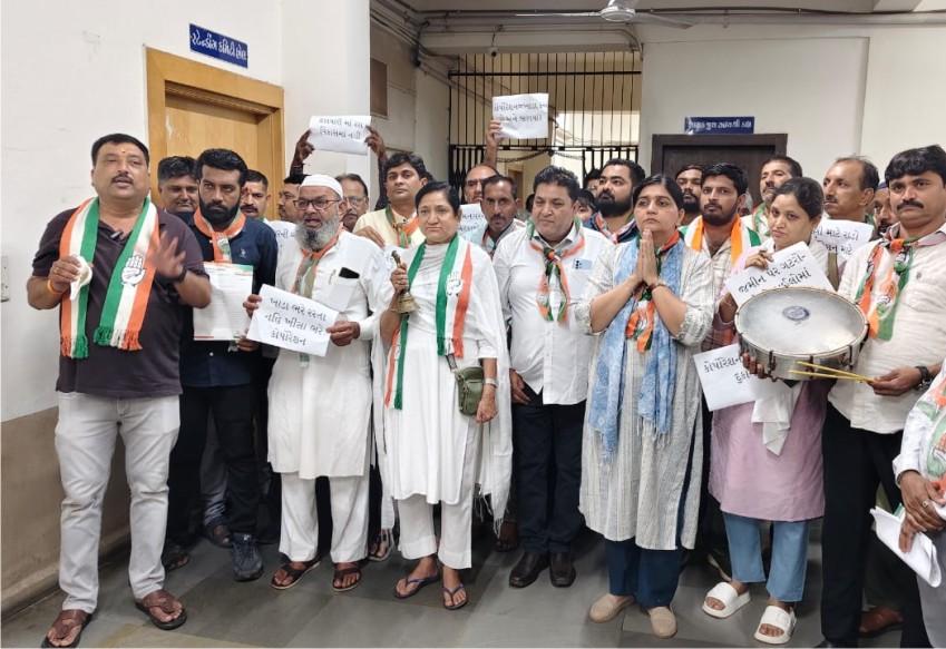ચેમ્બર બંધ હોય, બારણામાં આવેદનપત્ર ચિપકાવ્યું: શાસકોની ઊંઘ ઊડાડવા પ્રયાસઃ પ્રજાના પ્રશ્ને મોઢું છૂપાવવાનો આક્ષેપ