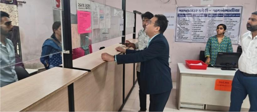 આ પછી ખંભાળિયા મામલતદાર કચેરીની મુલાકાત લઈને ત્યાં ઈધરા કેન્દ્ર, જન સેવા કેન્દ્ર તથા અન્ય શાખાઓની રૂબરૂ મુલાકાત લઈને રેશન કાર્ડ, ઈ-કે.વાય.સી. તથા વારસાઈ નોંધોની કામગીરી ઝુંબેશરૂપે પૂર્ણ કરવા સૂચનાઓ આપી હતી.