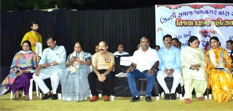 'છોટીકાશી' જામનગરમાં વિજયા દશમી નિમિત્તે સિંધી સમાજ દ્વારા પ્રદર્શન ગ્રાઉન્ડમાં પરંપરાગત રીતે રાવણ દહનનાં કાર્યક્રમનું આયોજન કરવામાં આવ્યુ હતું. સિંધી સમાજ દ્વારા છેલ્લા સાત દાયકાથી રાવણ દહન કરવામાં આવે છે. રાવણ દહન પૂર્વે નાનકપુરીથી પ્રદર્શન ગ્રાઉન્ડ સુધી રામ સવારી નીકળી હતી. હવાઇ ચોક, ચાંદી બજાર, રણજીત રોડ, લીમડાલાઇન, તથા ગૌરવ પથ પર થઇ રામ સવારી પ્રદર્શન ગ્રાઉન્ડ પહોંચી હતી. રામ સવારીમાં હનુમાનજી સહિતનાં દેવતાઓના પાત્રોની વેશભૂષામાં કલાકારોએ આકર્ષણ જગાવ્યું હતું. રાવણ દહનનાં કાર્યક્રમમાં સાંસદ પૂનમબેન માડમ, ધારાસભ્યો દિવ્યેશભાઇ અકબરી તથા રીવાબા જાડેજા, શહેર ભાજપ અધ્યક્ષ બીનાબેન કોઠારી, મેયર વિનોદભાઈ ખીમસૂર્યા, ડે. મેયર ક્રિષ્નાબેન સોઢા, સ્ટે. કમિટી ચેરમેન નિલેશભાઇ કગથરા, શાસક પક્ષ નેતા આશિષભાઇ જોશી સહિતનાં સત્તાધીશો અતિથિ થયા હતાં. જામનગર સિંધી સમાજનાં પ્રમુખ ઘનશ્યામદાસ ગંગવાણી,સમાજનાં ચેરમેન તથા ગુજરાત સરકારનાં પૂર્વ મંત્રી પરમાનંદભાઇ ખટ્ટર, સમાજનાં જનરલ સેક્રેટરી કિશોરકુમાર સંતાણી સહિતના હોદ્દેદારો તથા સિંધી અગ્રણીઓ દ્વારા મહાનુભાવોનું સ્વાગત અભિવાદન કરવામાં આવ્યુ હતું. સાંસદ પૂનમબેન માડમ દ્વારા સિંધી સમાજનાં સમગ્ર આયોજનને બિરદાવી રાવણ દહનના કાર્યક્રમથી નવી પેઢીને પણ ધર્મનાં માર્ગે ચાલવાની પ્રેરણા મળતી હોવાનું જણાવ્યું હતું. સંધ્યા સમયે ૩૦ ફૂટ ઉંચા કુંભકર્ણ અને મેઘનાદનાં પૂતળાઓ તથા ૩૫ ફૂટ ઉંચા રાવણનાં પૂતળાને ભગવાન શ્રી રામનું પાત્ર ભજવનાર પાત્ર દ્વારા તીર ચલાવી આગચંપી કરવામાં આવી હતી જે પછી ધડાકાભેર ત્રણેય અસુરનાં પૂતળાઓ સળગી ઉઠ્યા હતા અને અગ્નિની જ્વાળાઓએ અધર્મનાં અંધકાર સામે ધર્મનાં ઉજાસનો જયઘોષ કર્યો હતો. રાવણ દહનનો કાર્યક્રમ નિહાળવા હકડેઠઠ મેદની ઉમટી પડી હતી. જે આજનાં ડિજીટલ યુગમાં પણ સાંસ્કૃતિક પરંપરાઓ પ્રત્યે લોકોની રૂચિ અકબંધ હોવાનાં પુરાવા સમાન છે.