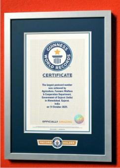 સચિવે વધુમાં જણાવ્યું હતું કે, ગિનિસ વર્લ્ડ રેકોર્ડના ડેટા મુજબ પોસ્ટકાર્ડ લેખનનો સૌથી મોટો વર્લ્ડ રેકર્ડ અત્યાર સુધી ૬,૬૬૬ પોસ્ટકાર્ડ સાથે સ્વિસ એજન્સી ફોર ડેવલપમેન્ટ એન્ડ કો-ઓપરેશન (એસડીસી)-સેક્શન વોટર(સ્વિત્ઝરલેન્ડ) બાસેલ, સ્વિત્ઝરલેન્ડ પાસે હતો, જે હવે ગુજરાતનાં નામે થયો છે. જે અંતર્ગત સહકાર વિભાગ દ્વારા ગિનિસ વર્લ્ડ રેકોર્ડ, લંડન સાથે એગ્રીમેન્ટ કરવામાં આવ્યું હતું. ત્યારબાદ રિવરફ્રન્ટ, અમદાવાદમાં ૩૫૦સ૮૦ ફૂટના વિસ્તારમાં ૭૫,૦૦,૦૦૦નો આંકડો બનાવીને તેમાં પોસ્ટકાર્ડ લગાવવામાં આવ્યા હતા, જે માટે સહકાર વિભાગના ૫૦થી વધુ અધિકારીઓ તથા ૧૦૦થી વધુ કર્મચારીઓએ સતત ૩-૪ દિવસ સુધી ભારે જહેમત ઉઠાવી હતી.