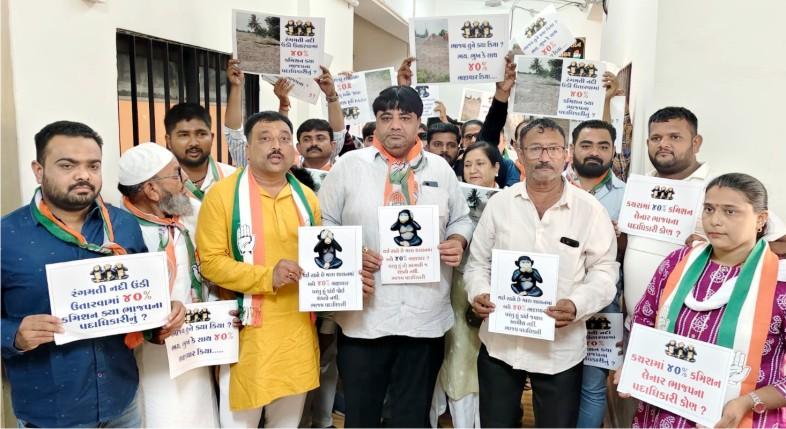 ૪૦% ભ્રષ્ટાચારના ચોપાનિયા સાથે સ્થાયી સમિતિ હોલ બહાર ધરણાં-સૂત્રોચ્ચારઃ