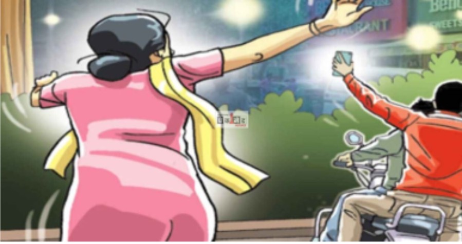 આ વેળાએ ડબલસવારી માં એક મોટરસાયકલ ધસી આવ્યું હતું. તેના પર રહેલા પચ્ચીસથી ત્રીસ વર્ષની વયના બે શખ્સમાંથી એક શખ્સે હાથ લંબાવીને હીરૂબેનના ડાબા કાનમાં પહેરેલું અંદાજે દોઢેક તોલા વજનનું સોનાનું ઠોરીયુ ઝૂંટવી લીધુ હતું. ઠોરીયુ હાથમાં આવી જતાં આ શખ્સો સ્થળ પરથી નાસી ગયા હતા.