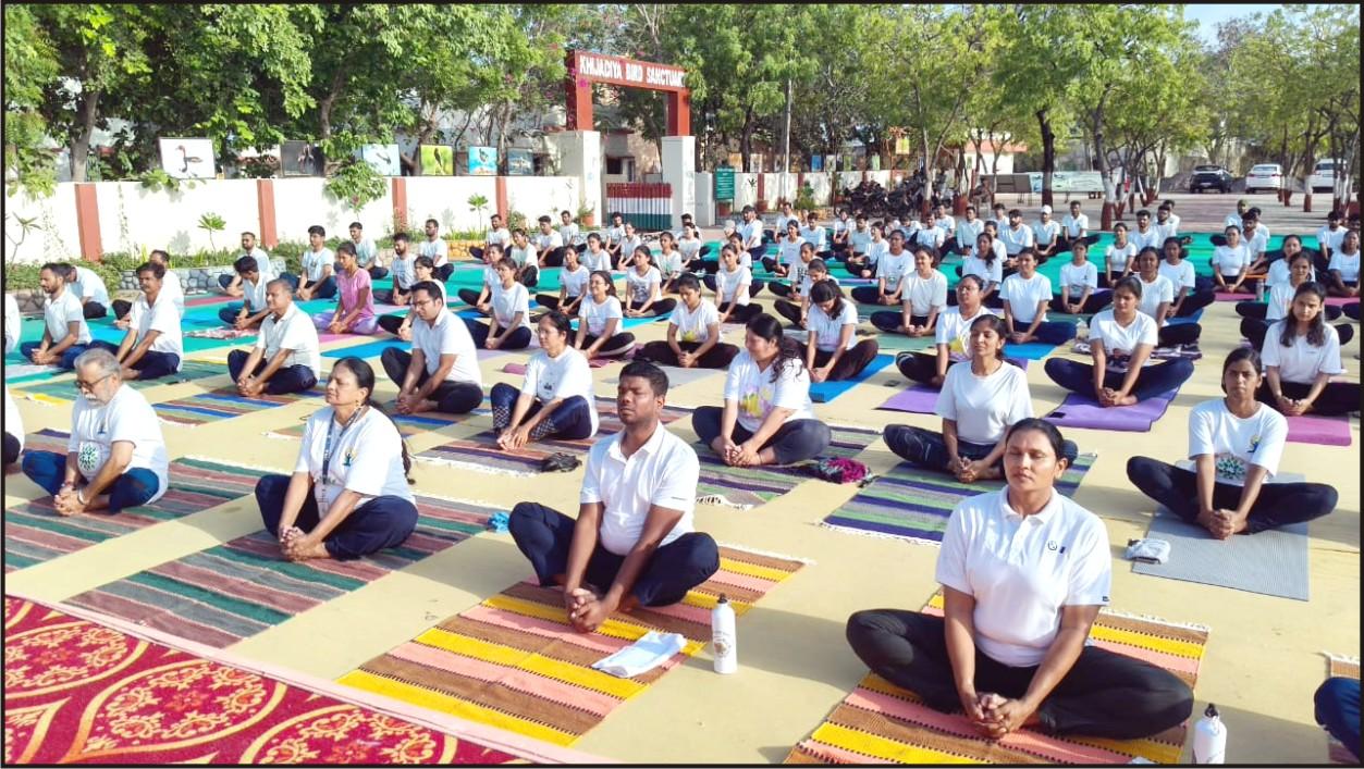 આયુષ મંત્રાલય ભારત સરકારના જામનગર સ્થિત આયુર્વેદ શિક્ષણ અને અનુસંધાન સંસ્થાન જામનગર દ્વારા પ્રખ્યાત રામસર સાઈટ એવા ખીજડીયા પક્ષી અભયારણમાં આજે તા. ૧ર જૂનના સવારે ૭-૩૦ થી ૮-૪પ દરમિયાન આંતરરાષ્ટ્રીય યોગ દિવસને સત્કારવા તેમજ પ્રકૃતિ વચ્ચે યોગ થકી સ્વાસ્થ્ય સક્ષમ બનાવવાના હેતુસર વિવિધ યોગનું નિદર્શન કરવામાં આવ્યું હતું. આ નિદર્શનમાં ઈટ્રાના નિયામક પ્રો. ડો. તનુજા નેસરી, મેરિન નેશનલ પાર્કના ડેપ્યુટી કંઝરવેટરી ઓફ ફોરેસ્ટ પ્રસાદ રવિ રાધા કૃષ્ણન, રેન્જ ફોરેસ્ટ ઓફિસર દક્ષાબેન વઘાસિયા સહિત ઈટ્રા શૈક્ષણિક-બીન શૈક્ષણિક સ્ટાફ, ડીન તેમજ વિદ્યાર્થીઓ અને સ્વસ્થવૃત્ત-યોગ વિભાગના કર્મચારીઓ સહિત ર૦૦ સહભાગીઓએ ભાગ લઈ અભયારણનું વાતાવરણ યોગમય બનાવ્યું હતું. વર્ષ ર૦રપ માં આંતરરાષ્ટ્રીય યોગ દિવસની ઉજવણીને દસ વર્ષ થનાર છે, ત્યારે સમગ્ર દુનિયામાં અભૂતપૂર્વ ઉત્સાહ અને યોગ પ્રત્યે લોકોની ઉત્સુક્તા અને જાગૃતિ વધી રહી છે. આ તકે વિશ્વ વિખ્યાત એવા ખીજડીયા પક્ષી અભયારણ્યમાં થયેલું યોગ નિદર્શન લોકોને વધુ યોગમય બનવા પ્રેરિત કરશે.