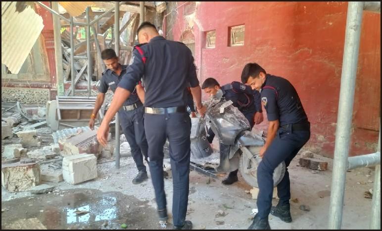 જામનગરના જુની કલેક્ટર કચેરી કમ્પાઉન્ડ સ્થિત જર્જરિત ઈમારતનો કેટલોક હિસ્સો ગઈકાલે તૂટી પડ્યો હતો. પરિણામે એક મોટર અને બાઈકને નુક્સાન થયું હતું. બનાવની જાણ થતા જ મહાનગરપાલિકાની ફાયર અને એસ્ટે શાખાનો સ્ટાફ દોડી ગયો હતો અને જરૂરી કામગીરી હાથ ધરી હતી. જામનગરના લાલબંગલા વિસ્તારની જુની કલેક્ટર કચેરીના મેદાનમાં આવેલી સરકારી ઈમારતનો કેટલોક ભાગ ગઈકાલે તૂટી પડતા કાટમાળ હેઠળ ત્યાં પાર્ક કરાયેલ એક કાર અને બે ટુ-વ્હીલર દબાઈ જતા તેને બહાર કાઢવામાં આવ્યા હતાં, જો કે કોઈ જાનહાની થઈ નથી. બનાવની જાણ થતા જ મહાપાલિકાની ફાયર અને એસ્ટેટ શાખાનો સ્ટાફ દોડી ગયો હતો અને કાટમાળ દૂર ખસેડી અન્ય જર્જરિત હિસ્સાને તોડી પાડ્યો હતો.