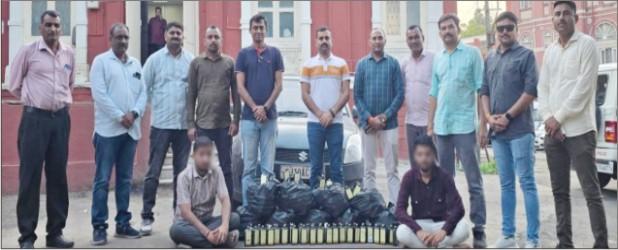 તે દરમિયાન જીજે-૧૦-એસી ૧૮૦૫ નંબરની સ્વીફટ મોટર પસાર થતા તેને રોકી લેવામાં આવી હતી. આ મોટરની તલાશી લેવાતા તેમાંથી ભારતીય બનાવટના અંગ્રેજી શરાબના ૪૮૦ ચપલા મળી આવ્યા હતા. આ જથ્થા સાથે કિસાન ચોક નજીક કબીર આશ્રમ પાસે રહેતા વિશાલ પ્રવીણભાઈ માવ તથા નંદનવન સોસાયટીમાં રહેતા જયેશ કિશોરભાઈ ચાંદ્રા ઉર્ફે જયુ સિંધી નામના બે શખ્સને દબોચી લેવાયા છે. એલસીબીએ મોટર, શરાબનો જથ્થો, બે મોબાઈલ મળી કુલ રૂ.૪,૭૩,૫૦૦નો મુદ્દામાલ ઝબ્બે લીધો છે. આ શખ્સોની હાથ ધરાયેલી પૂછપરછમાં દારૂનો જથ્થો મૂળ ઉત્તરપ્રદેશના વતની અને હાલમાં ધ્રોલમાં રહેતા ક્રિપાશંકર ઓમકારનાથ શર્મા નામના શખ્સે સપ્લાય કર્યાની વિગત મળી છે. ત્રણેય સામે પંચકોશી એ ડિવિઝન પોલીસ સ્ટેશનમાં ગુન્હો રજીસ્ટર કરાવાયો છે.