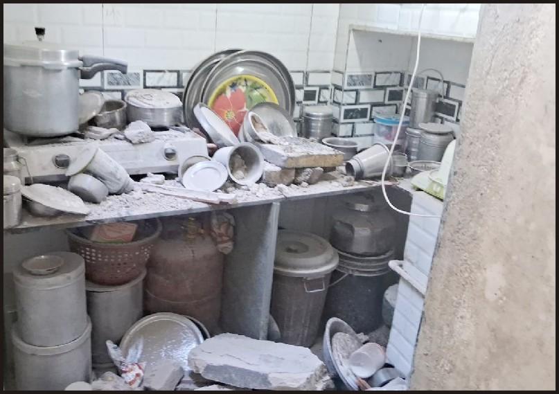 તે બાંધકામના સ્થળે આજે સવારે એક કડિયા શ્રમિક સેન્ટીંગ કામ કરી રહ્યા હતા. ત્યારે કોઈ રીતે છતનો તે ભાગ દીવાલ સાથે ધડાકાભેર ધરાશાયી થયો હતો અને તે ભાગ બાજુમાં જ આવેલા મેમુદાબેન હનીફભાઈ પીઠડીયા નામના મહિલાના નળીયાવાળા મકાન પર ધસી પડતા રસોડામાં ચા બનાવી રહેલા મેમુદાબેન હેબતાયા હતા અને તેઓ કંઈ વિચારે તે પહેલાં તેમના પર છતનો કાટમાળ અને તેની સાથે જ ત્યાં કામ કરી રહેલો શ્રમિક પણ પટકાઈ પડ્યો હતો.
