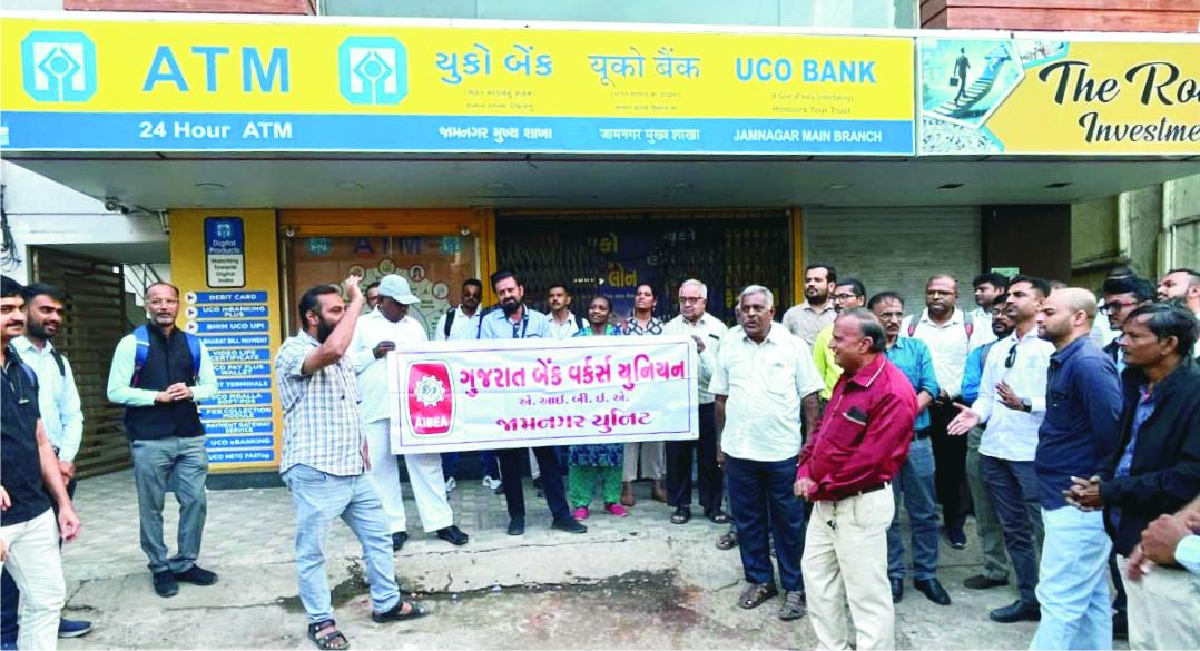 આજે દેશભરમાં વીજ કંપની, ખેડૂત સંસ્થા, બેંક વિગેરે સહિત ટ્રેડ યુનિયનો દ્વારા હડતાળનું એલાન આપવામાં આવ્યું છે. જામનગરમાં પણ આજની હડતાલની અસર જોવા મળી હતી, બેંકો બંધ રહેતા બેન્કીંગ સેવામાં વિક્ષેપ ઊભો થયો છે. વર્તમાન કેન્દ્ર સરકારની નીતિ-રીતિ સામે કેન્દ્ર સરકારની અમુક કચેરીના કામદાર સંગઠનો દ્વારા તા. ૧ર અને ગુરુવારે એક દિવસની હડતાળનું એલાન આપવામાં આવ્યું હતું, જેમાં ખાસ કરીને કર્મચારી હિત વિરોધી સુધારાઓ, ખાનગીકરણ સહિતના મુદ્દાઓને ધ્યાનમાં રાખીને આજની હડતાળનું એલાન આપવામાં આવ્યું છે. દેશભરના વીમા, બેંક, વીજકંપની, એલઆઈસી સહિતના વિભાગોના અમુક કર્મચારીઓ હડતાળમાં જોડાતા સેવામાં વિક્ષેપ ઊભો થયો છે. જામનગરમાં આજે મુખ્યત્વે રાષ્ટ્રીયકૃત બેંકોના કર્મચારીઓ હડતાળમાં જોડાતા બેંકમાં કામગીરી બંધ રાખવાની ફરજ પડી હતી. દેશવ્યાપી હડતાળમાં જામનગરમાંથી રાષ્ટ્રીયકૃત બેંકોના સેંકડો કર્મચારીઓ જોડાયા હતાં, અને ગઈકાલે સાંજે બેંકકર્મીઓએ યુકો બેંક પાસે એકત્રિત થઈને સૂત્રોચ્ચાર કર્યા હતાં.તેમ ગુજરાત બેંક વર્કસ યુનિયનના જિલ્લા સંગઠન મંત્રી કુલિન ધોળકિયાએ જણાવ્યું છે.