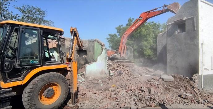 જામનગરના બેડી વિસ્તારમાં ગયા માર્ચ મહિનામાં એક એડવોકેટની સરાજાહેર કરાયેલી હત્યા પછી તે વિસ્તારમાં માથું કાઢી ચૂકેલા કુખ્યાત શખ્સોના ગેરકાયદે બાંધકામો તંત્રના રડારમાં આવ્યા હતા. આવા બાંધકામોને જમીનદોસ્ત કરવાની નેમ સાથે ગઈ તા.૧૮ માર્ચ ૨૦૨૪ના દિવસે ઓપરેશન ડિમોલિશન કરવામાં આવ્યું હતું. જેમાં રહેણાંક, બંગલાઓ, સ્વિમિંગ પુલ સહિતના બાંધકામો પર બુલડોઝર ફરી વળ્યું હતું. તે પછી આજે સવારથી જિલ્લા કલેક્ટર કે.બી. ઠક્કર અને વહીવટી ટીમે જિલ્લા પોલીસવડા પ્રેમસુખ ડેલુના વડપણ હેઠળની પોલીસ ટૂકડીના ચૂસ્ત બંદોબસ્ત વચ્ચે વધુ એક વખત ઓપરેશન ડિમોલિશન હાથ ધર્યું હતું. તે વિસ્તારમાં સરકારી ખરાબામાં ખડકાઈ ગયેલા બાંધકામોને દૂર કરવામાં આવી રહ્યા છે. અંદાજે પાંચેક હજાર ચોરસ મીટર જેટલી જગ્યા ઓપરેશન ડિમોલિશન પછી ખાલી થઈ જવા પામશે તેવી શક્યતાઓ જોવાઈ રહી છે. જેસીબી મશીનથી શરૂ કરાયેલા પાડતોડ કામને ચુસ્ત પોલીસ બંદોબસ્ત આપવામાં આવ્યો છે.