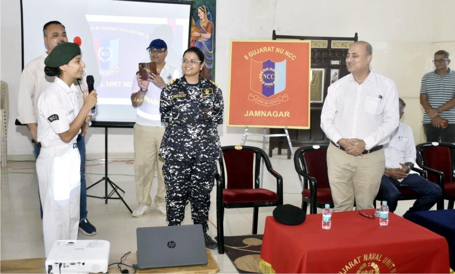 આ મુલાકાત દરમિયાન નાયબ નિયંત્રક નાગરિક સંરક્ષણ વી.કે.ઉપાધ્યાય, ૮ ગુજરાત નેવલ એન.સી.સી. યુનિટ જામનગરના કમાન્ડિંગ ઓફિસર લેફ્ટનન્ટ કમાન્ડર સ્નેહા રાય, એસોસિએટ એન.સી.સી. ઓફિસર્સ, પરમેનન્ટ ઇન્સ્ટ્રક્ટર તથા બહોળી સંખ્યામાં કેડેટ્સ ઉપસ્થિત રહૃાા હતા.