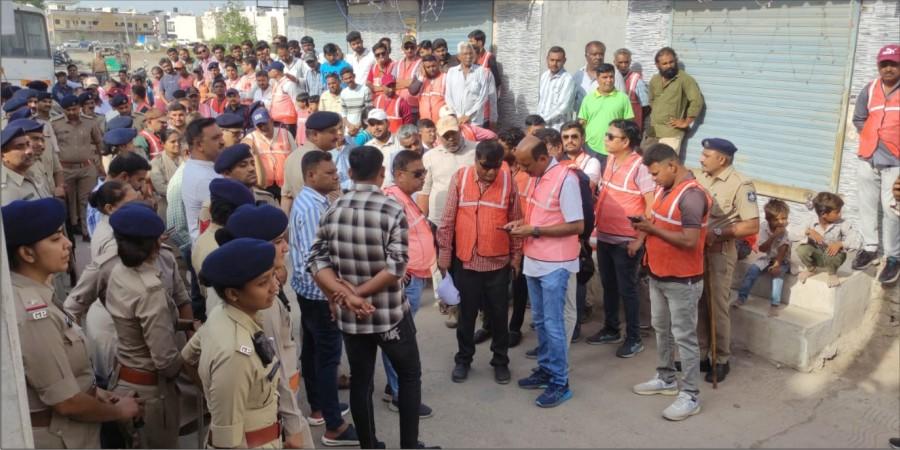 જામનગર મહાનગરપાલિકાના મ્યુનિ. કમિશનર ડી.એન. મોદી, ડેપ્યુટી કમિશનર દેવેન્દ્રસિંહ ઝાલા, આસી. કમિશનર ભાવેશ જાની સહિતના અધિકારીઓના માર્ગદર્શન હેઠફ્ર કંટ્રોલિંગ અધિકારી મુકેશ વરણવા તથા મહાનગરપાલિકાની અન્ય જુદી જુદી ટીમના અધિકારીઓ નો કાફલો વિશિષ્ટ પ્રકારના જેકેટ પહેરી ને વહેલી સવારથી મેદાનમાં ઉતર્યો હતો, અને મક્કમતાપૂર્વક ડીમોલીશન કાર્ય શરૂ કરી દેવાયું છે.