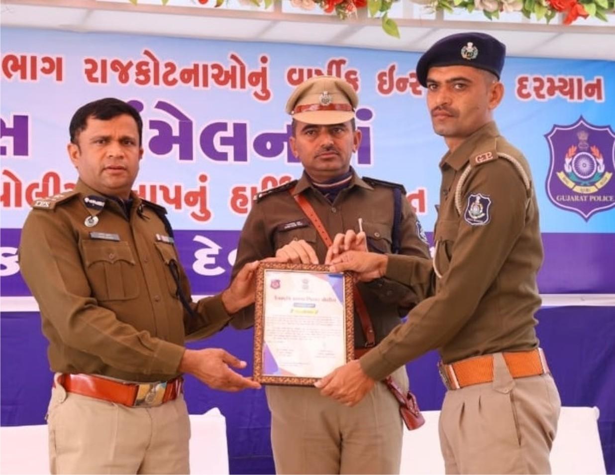 ઈ-ગુજકોપમાં પોલીસ સ્ટેશનોમાં ખૂબ જ સુંદર કામગીરી કરનાર મીતલબેન ભરતભાઈ ચાવડા, વિકમશીભાઈ કાનાભાઈ ગોજીયા તથા નીતીષકુમાર લખમણભાઈ સોરઠીયાનું સન્માન થયું હતું.