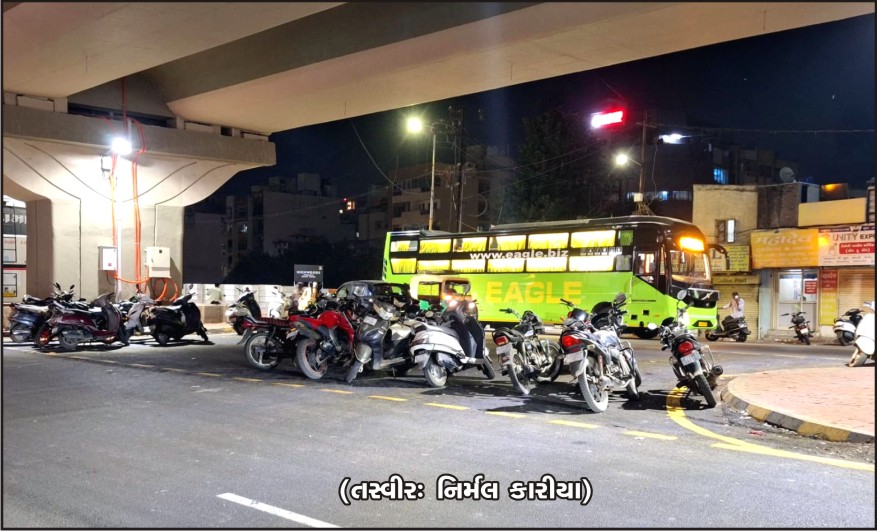 બ્રિજ નીચે એક તરફથી બીજી તરફ જવા માટે જે જગ્યાએ ડિવાઇડરમાં ગેપ છે ત્યાં લોકો વાહનો પાર્ક કરી દે છે એટલે ત્યાંથી વળાંક લઇ બાજુના સમાંતર રસ્તે જઇ શકાતું નથી. કેટલીક ખાનગી બસ પણ અહીં પાર્ક કરી દેવામાં આવે છે. કેટલીય જગ્યાએ ગાયો અડીંગો જમાવી બેસી ગયેલ જોવા મળે છે. આમ બ્રિજ નીચે વાહનચાલકો માટે અગવડતાભરી અને અકસ્માતજનક સ્થિતિ જોવા મળી રહી છે.